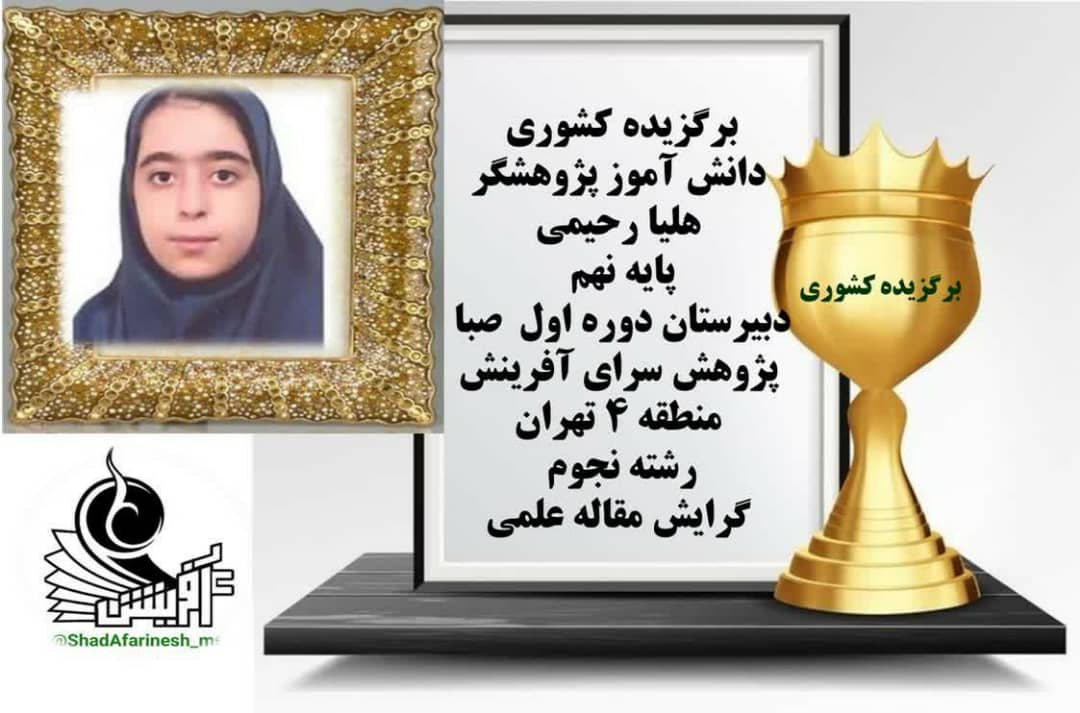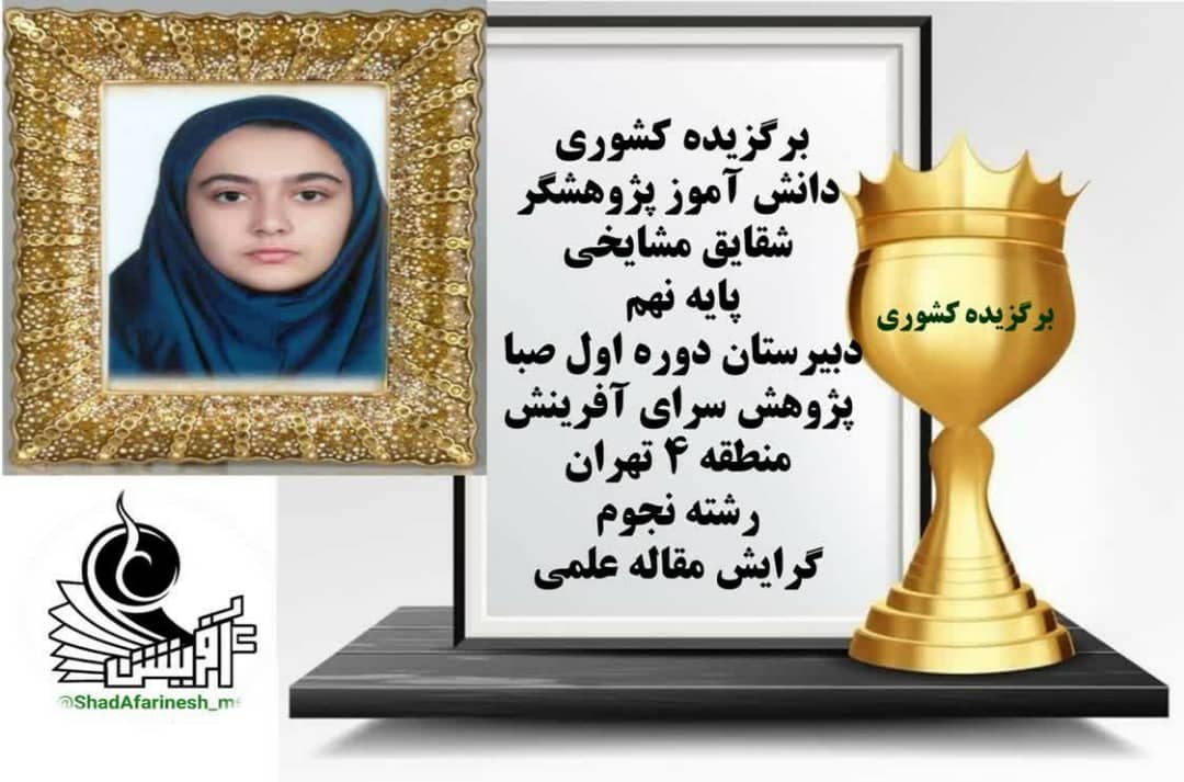 دانش آموزان پژوهشگر منطقه ۴ شهر تهران در مسابقات کشوری و جشنواره های علمی پژوهشی پژوهش سراهای دانش آموزی در رشته نجوم در سطح کشور را تبریک عرض می نماییم .